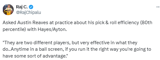 记者:你今年是联盟里挡拆持球效率最高的球员之一。有艾顿和海斯给你做掩护,对你的挡拆效率帮助有多大?
