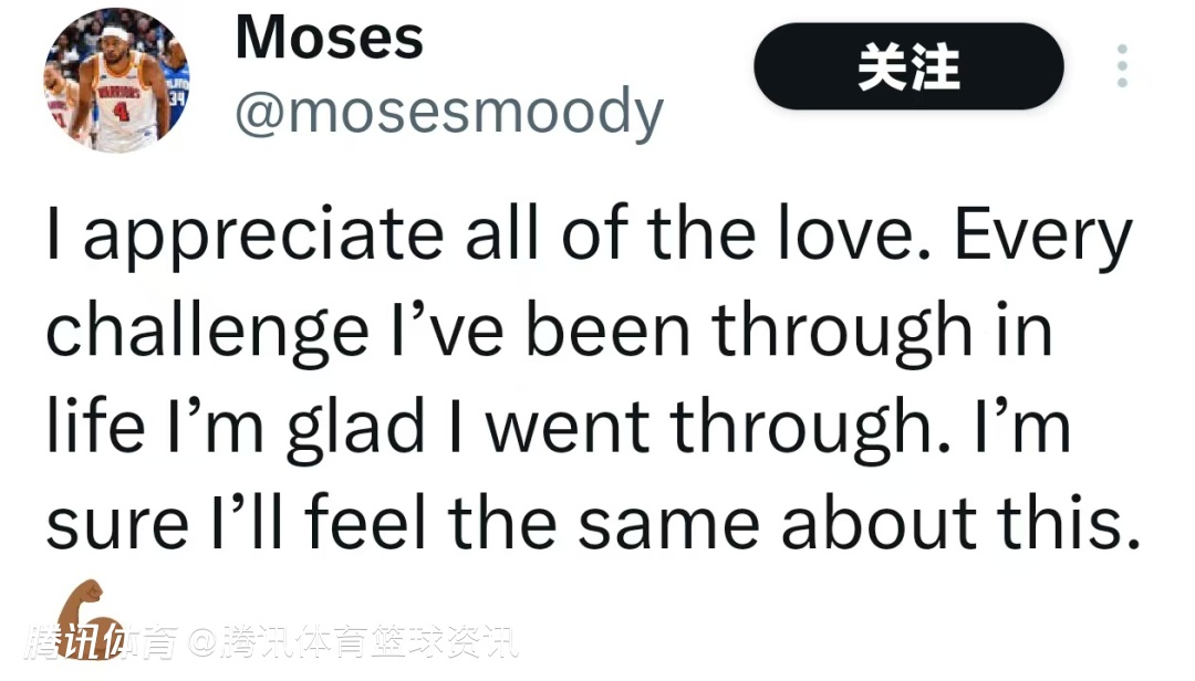 北京时间3月30日,勇士球员穆迪更新社媒,向关心他伤情进展的球迷致谢。