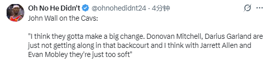 沃尔说道:“我认为他们必须做出重大调整。多诺万-米切尔和达柳斯-加兰的后场组合完全无法共存,而且在我看来,即便有了艾伦和莫布利在内线,他们的风格还是过于偏软了。”
