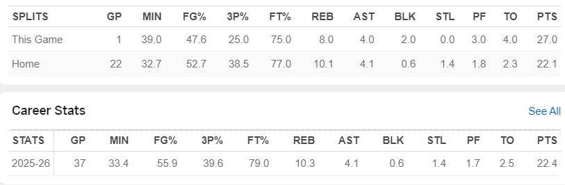 此役卡梅隆真的已经尽力了,作为名宿之子他有着很高的期待,上半场就拿到14分5篮板3助攻2盖帽,全场比赛39分钟,21中10,三分4中1,罚球8中6,拿到27分8篮板4助攻2盖帽4失误,命中率47.6%,三分命中率25%,作为一名以三秒区得分的大前锋来说这个效率是偏低的。