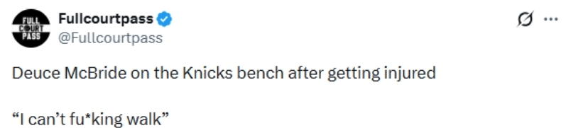 而他这次意外受伤,似乎情况不妙。因为在受伤之后,麦克布莱德曾在替补席对队友和队医说道:“我XX走不了路了。”