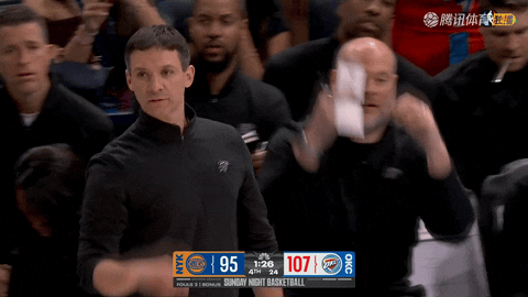第二节结束前的压哨回合中,哈特在外线接到布伦森分球命中三分,将比分追至尼克斯52-53雷霆,尼克斯在上半场一度落后8分的情况下,靠着这记压哨远投把分差缩小到只剩1分。