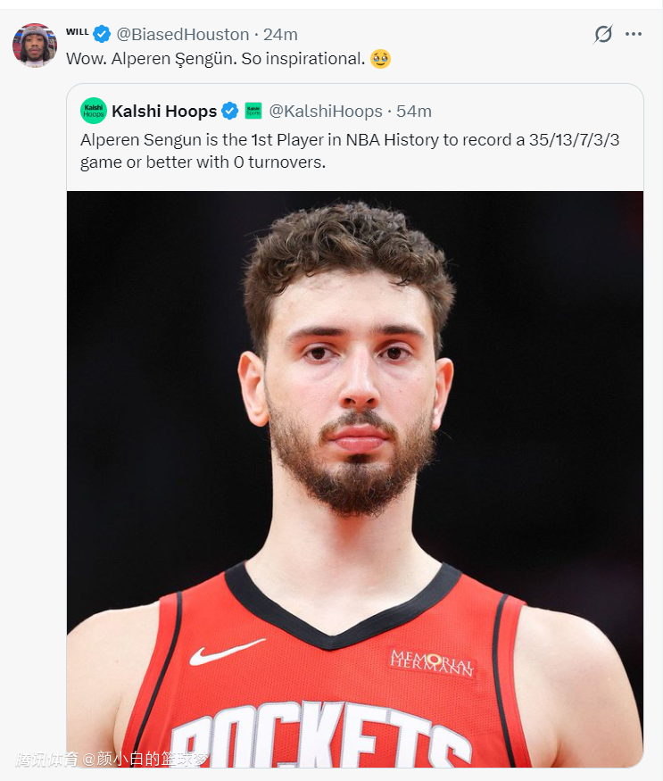 申京也成为历史首位单场至少35+13+7+3+3+0失误的球员,休媒都对申京赞不绝口,都说申京是非卖品,只有KD的球迷组织开始继续炮轰他。