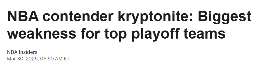 ESPN分析了NBA总决赛十大热门球队各自的最大软肋——包括替补得分、三分投射等,拆解这些短板在季后赛深入阶段可能造成的影响,并据此选出最能针对这些弱点的对手。