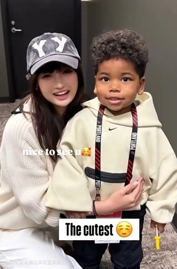 杨瀚森女友抱着利拉德儿子在场边转圈圈,随后她也晒出自己和利拉德儿子的合影,配文写道:“很高兴见到你。”