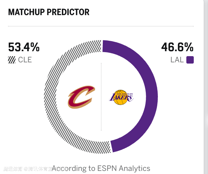 湖人46.6%,骑士53.4%
