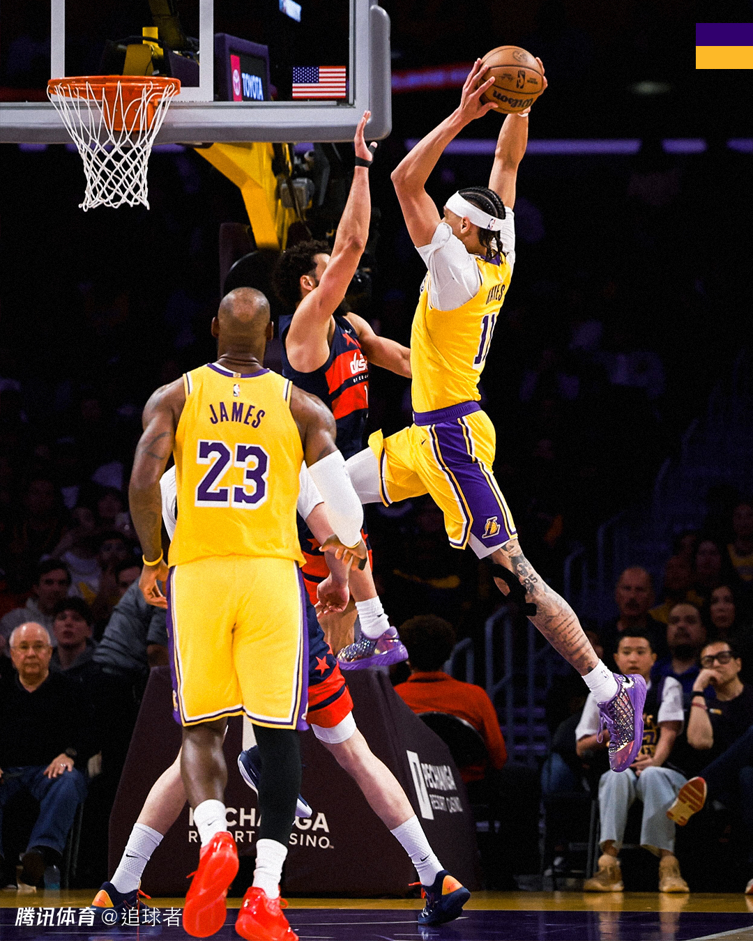 海斯吃饼吃爽了,首节没有机会,次节4中4贡献9分5篮板,末节4中4拿到10分2篮板,帮助湖人再次拉开分差;这一场,海斯不仅肆虐禁区而且把握三分机会,炸裂暴扣点燃全场,赛后海斯与浓眉开怀热聊。