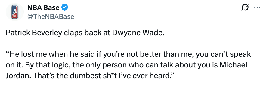 北京时间4月1日,前不久韦德怒怼贝弗利这种水平的球员,没资格比较自己跟哈登,贝弗利连75大的门槛都没进,近期,贝弗利也在节目中回应了韦德。