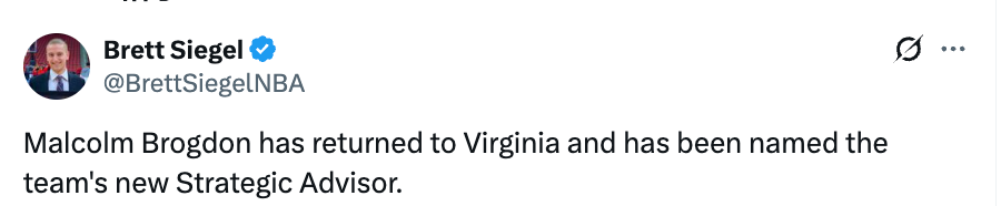北京时间4月1日,据美记Brett Siegel报道,前NBA球员布罗格登将重返其母校弗吉尼亚大学,担任球队战略顾问。