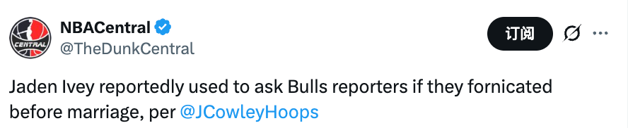 克劳利表示:“在艾维踏足芝加哥之前,活塞那边就已有风声,称他是个‘狂热布道者’。而实际情况远比传言更夸张。他赛后采访动不动就变成布道,追问记者是否‘得到救赎’、是否婚前有过性行为。我可谢谢你啊兄弟,我只是随口问问你膝盖怎么样了而已。”