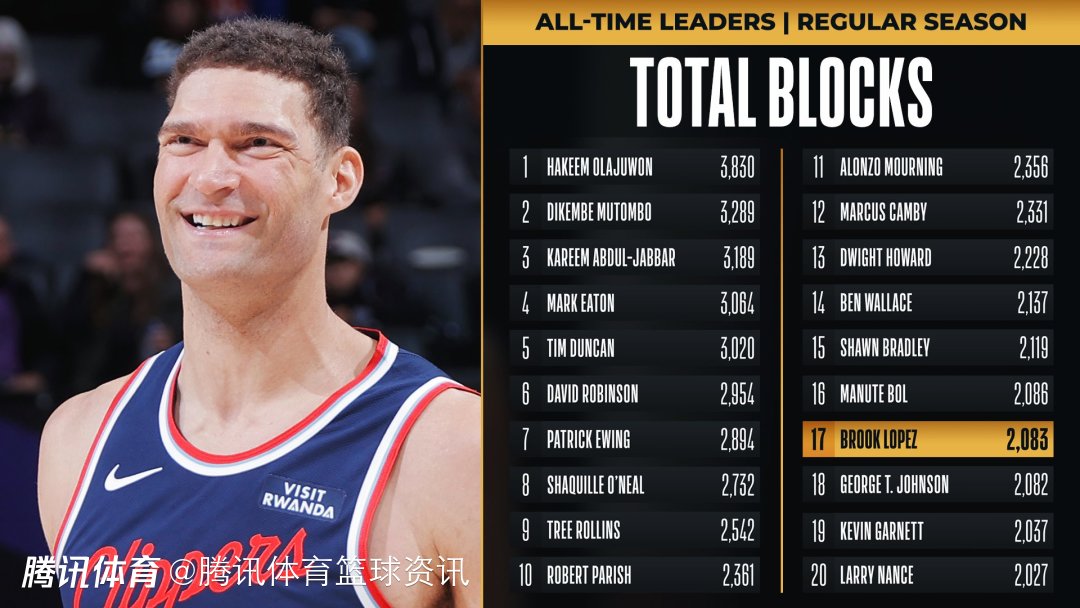 北京时间12月27日,NBA常规赛继续进行,快船队对阵开拓者队。本场比赛进行到第三节,大洛佩兹已经送出2次盖帽,生涯总盖帽数达到了2083次,超越乔治-约翰逊,升至NBA历史盖帽榜第17位。