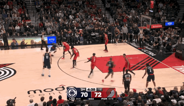 哈登进攻状态越发火热,他连续站上罚球线为快船带来侵略性,并且打进鼓舞全队士气的3+1,快船已经彻底将场上主动权把握在自己手中,将进攻高潮扩大到23-5。凭借着单节的碾压级别攻防表现,快船反超开拓者7分进入第四节。