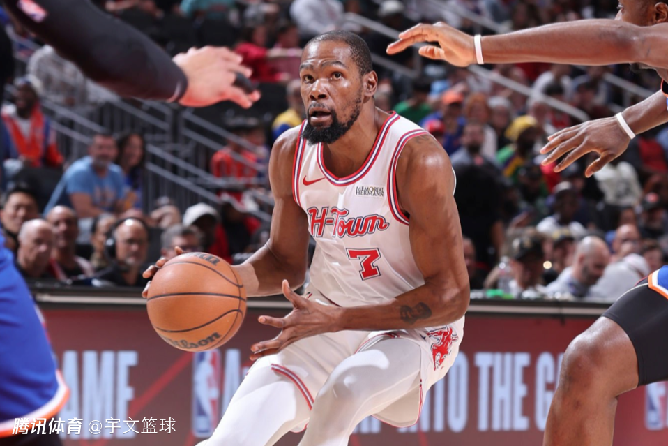 杜兰特重新接管进攻端,他送出精彩暴扣点燃现场气氛,一人连得5分再度率队压制尼克斯,为火箭始终把握绝对的赛场主动权。半场比赛结束,火箭领先尼克斯13分,杜兰特投篮10中7,三分6中2,贡献18分5篮板4助攻,正负值高达+19。