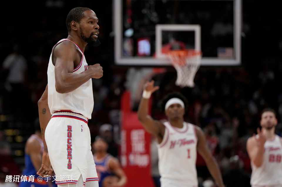 末节比赛,尼克斯多次尝试顽强追分,但是火箭始终能在进攻端予以回应,杜兰特在场边休息间隙甚至客串了一把拉拉队,在队友完成精彩进球期间疯狂呐喊为他们加油打气。不过为了确保比赛万无一失,杜兰特还是在比赛还剩下5分39秒领先17分时回归。