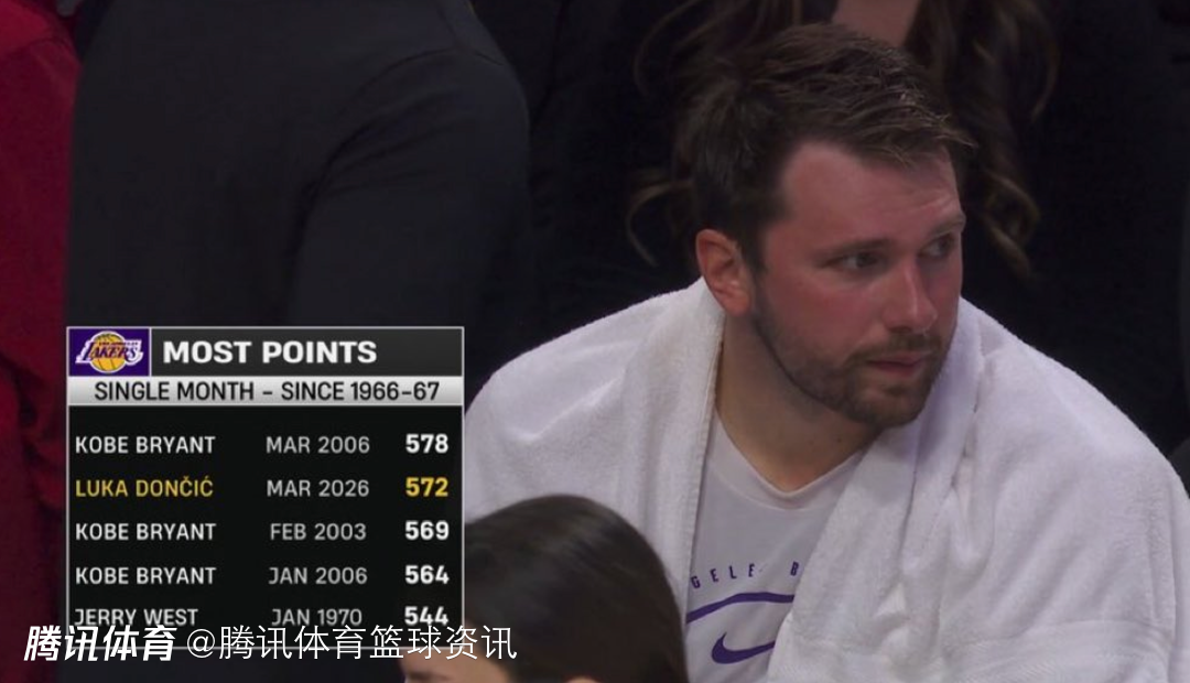 北京时间4月1日(美国当地时间3月31日),NBA常规赛,湖人主场对阵骑士,上半场战罢,东契奇迎来一项里程碑,追平科比(578分),成为湖人队史自1966-67赛季以来,单月得分并列第一多的球员。NBA历史单月得分最多的是1986-87赛季的乔丹,当时他在3月份共计拿到676分。