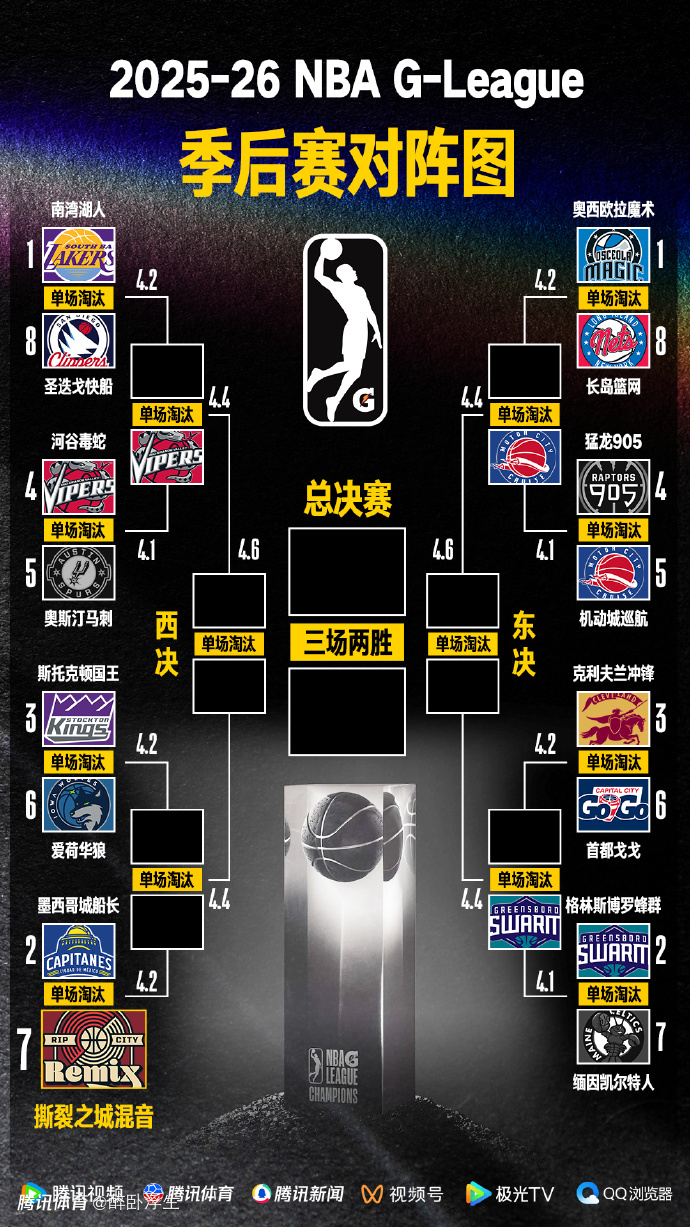 发展联盟的季后赛除了总决赛是三场两胜制外,其余轮次均是单场淘汰制,因而比赛的悬念会极大。