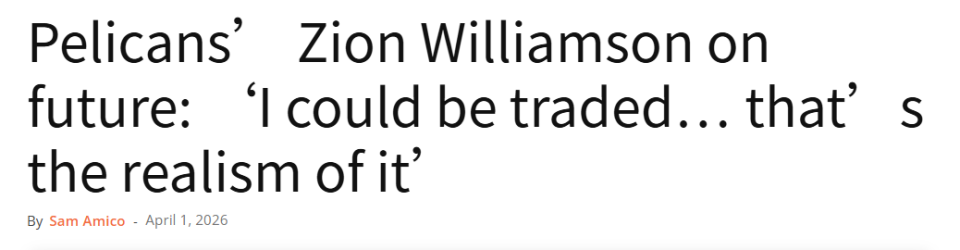 北京时间4月2日,鹈鹕球星锡安-威廉姆森没有无视外界流言,而是坦然面对。在接受雅虎体育记者亚龙-韦茨曼采访时,锡安谈到了自己在今年休赛期被交易的可能性。