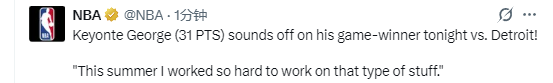 北京时间12月27日,NBA常规赛继续进行,爵士队凭借基扬特-乔治的抛投准绝杀,131-129击败活塞队。乔治此役22投12中得到31分,赛后他接受媒体采访,谈到了自己的这个关键球。