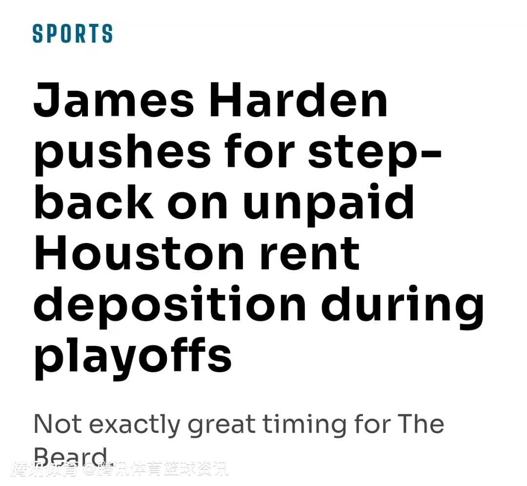 北京时间4月2日,据记者Michael Shapiro报道,骑士球星哈登已向法院申请,推迟其旗下餐厅拖欠220万美元租金一案的取证时间。