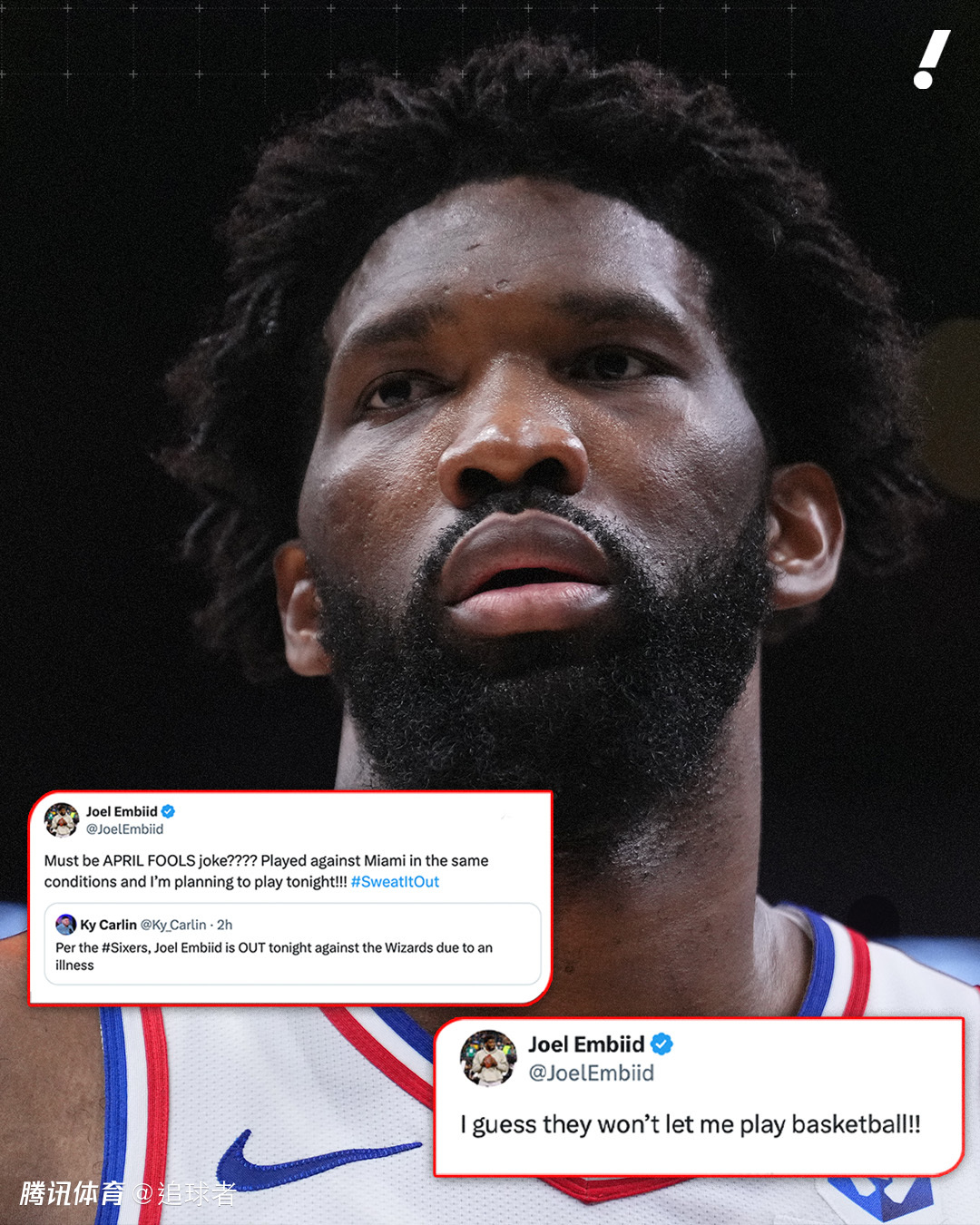 恩比德转发该记者报道,并吐槽道:这肯定是愚人节玩笑吧???我在同样的条件下和迈阿密比过赛,而且我今晚还计划上场呢!!!