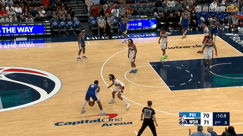 比赛开始还剩11分38秒时,乔治收到马克西助攻急停跳投命中,为76人先拔头筹,随后卡林顿回应跳投。