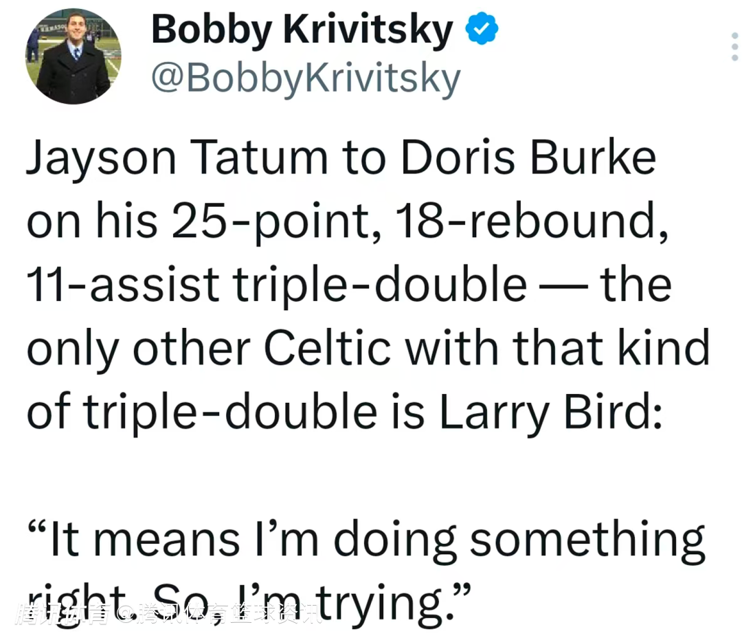 赛后谈及这一成就,塔图姆表示:“这说明我做得还不错,我会继续努力。”