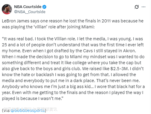 北京时间4月3日,湖人球星詹姆斯在接受采访时,谈及2011年总决赛失利的原因。