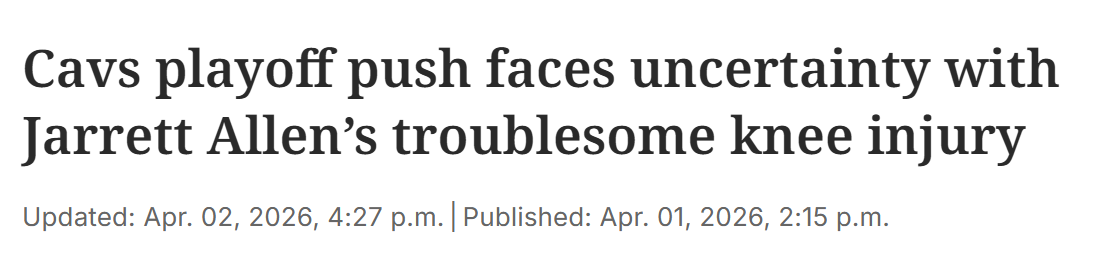 北京时间4月3日,据克利夫兰当地媒体报道,骑士球星艾伦患有严重肌腱炎,将需要在休赛期接受手术治疗。