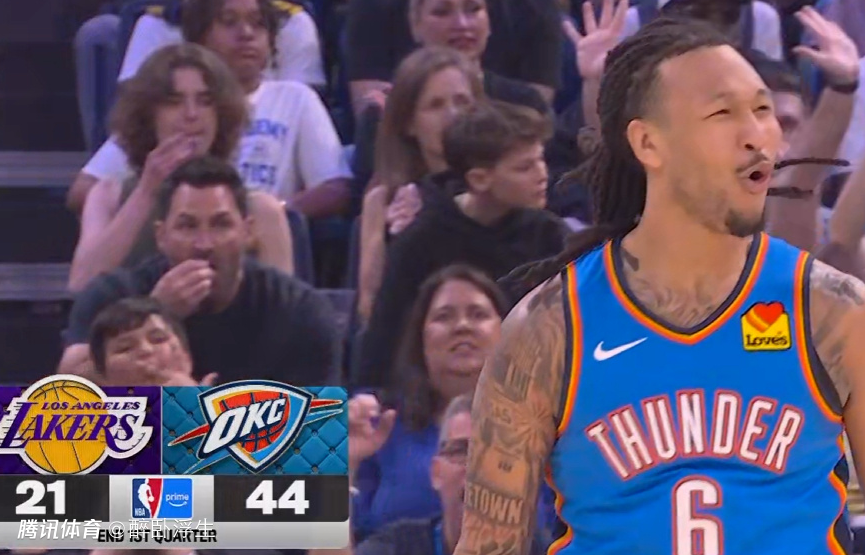 湖人与雷霆近期状态均是相当不俗,自然是令人对于西部前三的强强对话充满期待。未曾想,比赛却变成一边倒的湖人被吊打模式,首节结束湖人已经21-44落后23分差距。湖人核心东契奇打满12分钟6中1,詹姆斯也仅有1中0表现,里夫斯2中2得到8分却出现腰部不适,且被雷霆限制首节出现多达8次失误。