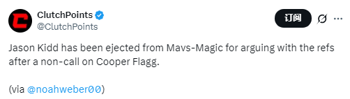 北京时间4月4日,NBA常规赛继续进行,独行侠对阵魔术。比赛进行至第4节时,独行侠主帅基德被驱逐出场。