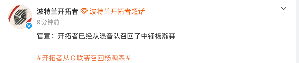 北京时间4月5日,开拓者官方宣布,从混音队召回杨瀚森。开拓者的下场比赛是北京时间4月7日上午9点,届时他们将客场对阵掘金。