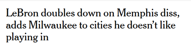 在谈到自己不喜欢的NBA客场城市以及近期遭受的批评时,詹姆斯并没有只停留在孟菲斯和密尔沃基。