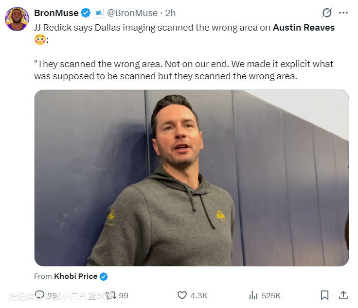 雷迪克对达拉斯的医院感到不满,雷迪克表示:这是我们第二次进行MRI检查,因为在达拉斯的影像中心他们扫描的位置是错误的,我们告知他们扫描了错误的区域但他们还是扫描错误了。