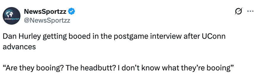赛后赫尔利在采访时遭到了现场观众的嘘声,他表示:“他们在嘘什么?是那个头撞事件吗?我完全搞不懂他们在嘘什么。”
