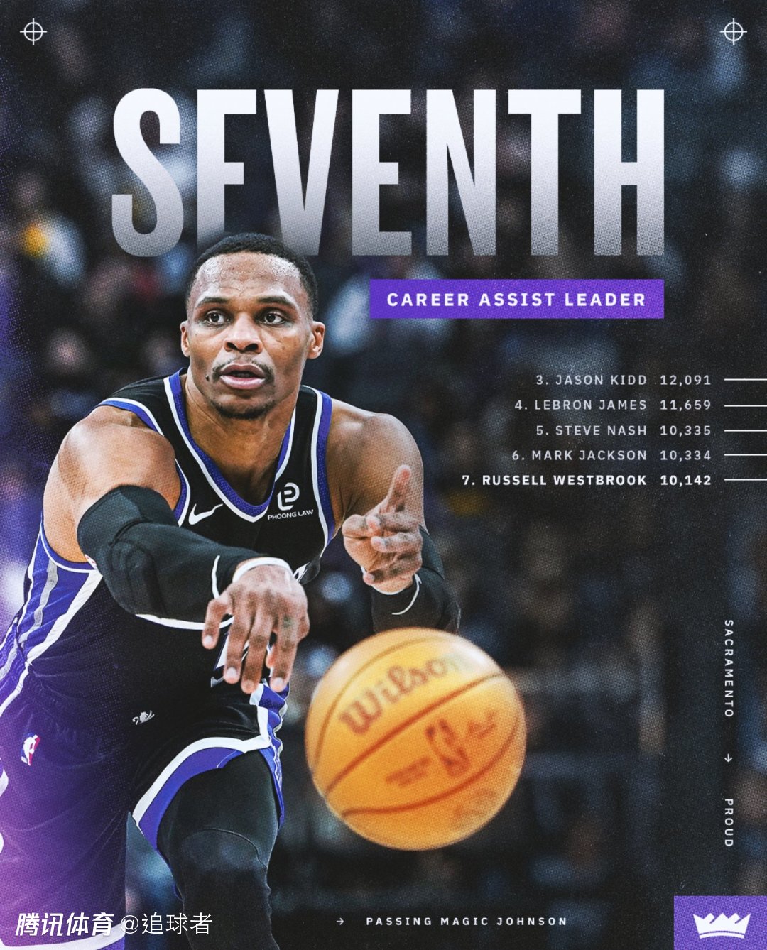 1、威少生涯助攻总数超越魔术师升到NBA历史助攻榜第7位