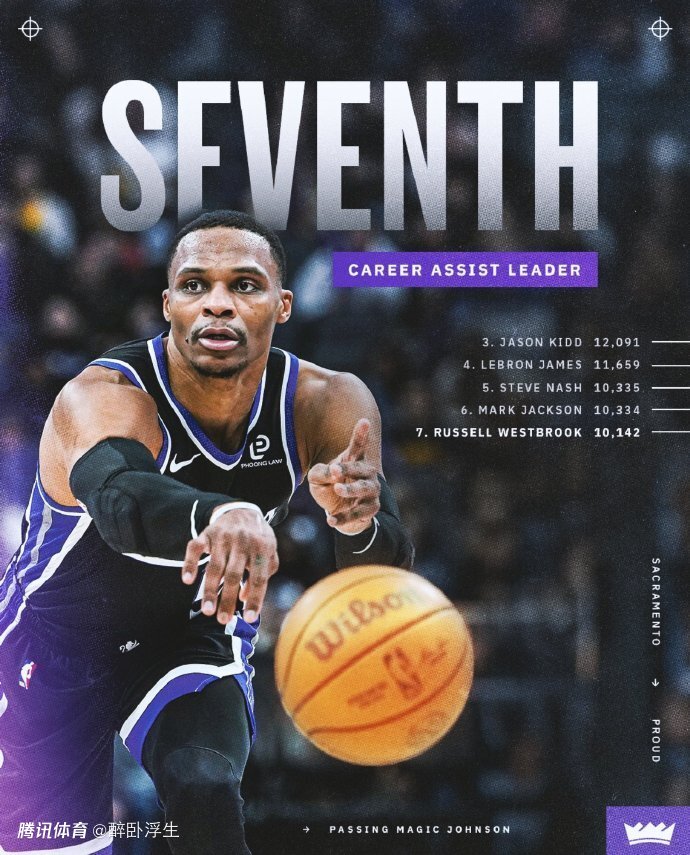 威少生涯助攻超越魔术师约翰逊,升至历史第7位。