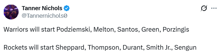 火箭队的首发为:谢泼德、阿门-汤普森、杜兰特、申京和小贾巴里-史密斯。