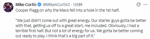 北京时间12月28日,NBA常规赛继续进行,独行侠队107-113不敌国王队。独行侠队球员库珀-弗拉格此役得到23分6篮板5助攻,赛后他接受媒体采访。