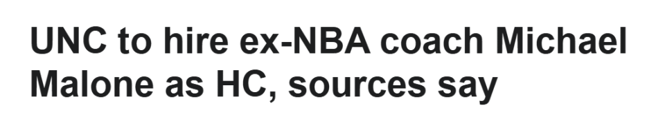 北卡此前与多位知名大学教练传出绯闻,包括密歇根大学的达斯汀-梅、亚利桑那大学的汤米-劳埃德以及爱荷华州立大学的T.J.奥策尔伯格。但在三人全部公开表态留任现职后,北卡转而选择了马龙——这位在2023年带领掘金夺得队史唯一一座NBA总冠军的教练。他于去年4月被掘金解雇,一个月后加入ESPN担任分析师。