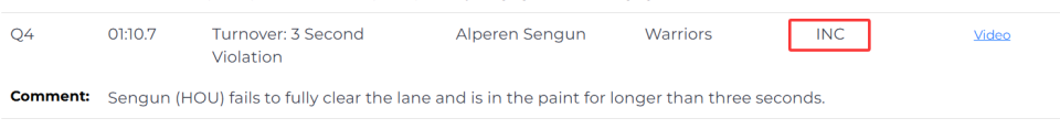 第二次漏判发生在距离比赛结束还剩1分10秒时,报告指出,火箭球员申京在禁区内停留超过三秒,这是一次漏吹的进攻三秒违例。申京随后命中一记抛投,还是一次2+1。而如果裁判正确响哨,申京拿下的这3分本该无效。显然,这次漏判还是勇士吃亏,火箭获利。