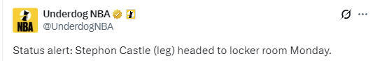 在受伤之前,卡斯尔此役出战6分钟,3投2中得到6分3篮板2助攻,在场正负值-2。