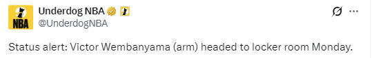 马刺队随后让文班亚马返回更衣室接受检查,在下场前,文班亚马此役已经出战11分钟,7投4中得到9分3篮板1助攻3盖帽。