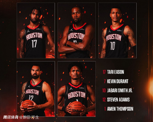 火箭:杜兰特、贾巴里-史密斯、亚当斯、阿门、伊森