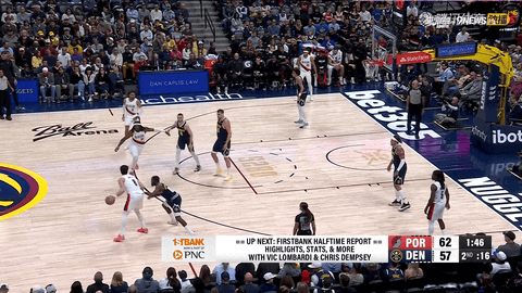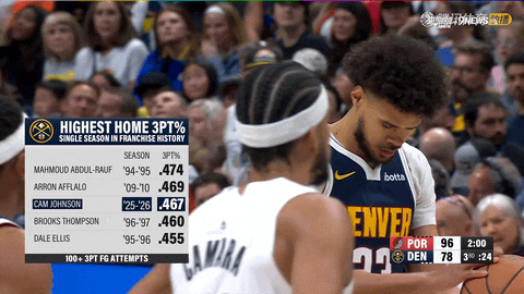 第二节还剩8分17秒时掘金暂停调整,从53-40落后到还剩6分23秒时追到53-49,瓦兰丘纳斯勾手、斯特劳瑟三分、布朗补篮和约翰逊跳投连线完成一波9-0。半场战罢,开拓者72-58保持优势。