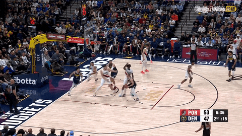 首节后段还剩3分51秒到1分38秒时,约基奇三次出手全部命中,补篮、突破抛投和转身跳投连拿分数,帮助掘金把比分追到33-29。首节结束,开拓者35-31领先。