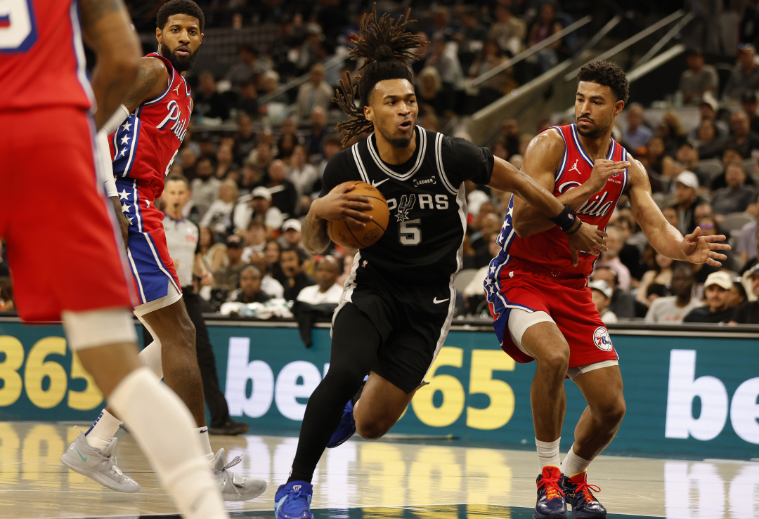 高光表现:砍下19+10+13的三双,外带2次抢断,四节稳定掌控节奏并频繁拆穿76人防线,是马刺全场保持领先、拿下胜利的进攻大脑。