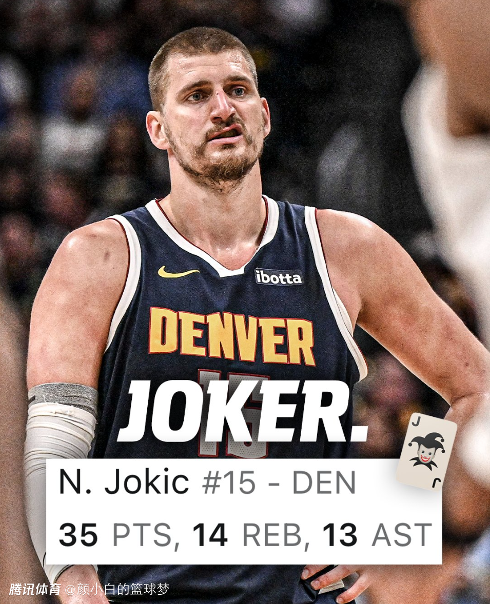 尼古拉-约基奇鏖战43分钟,31中15,三分5中1,罚球4中4,拿到35分14篮板13助攻5抢断2盖帽,命中率48.4%,三分命中率20%,这场比赛约基奇又创造多项纪录。