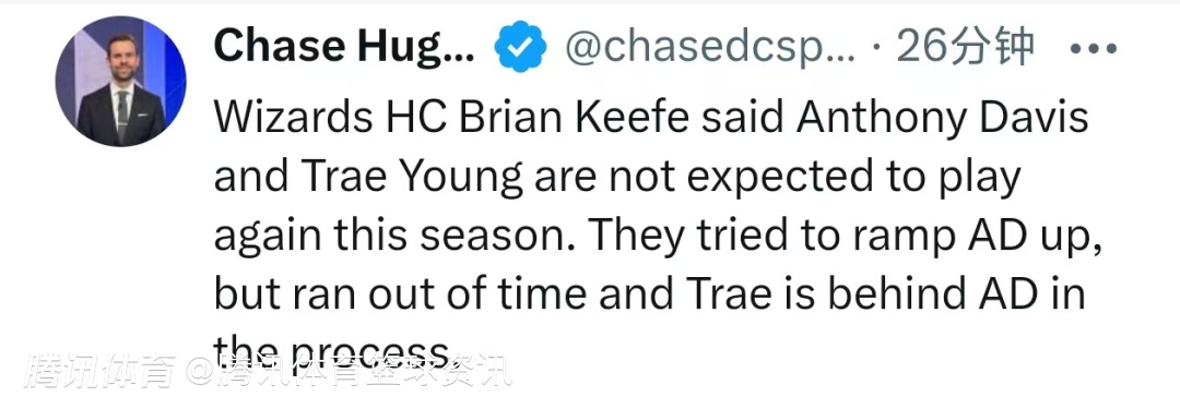 据悉,球队曾尝试让戴维斯逐步恢复训练、提升比赛强度,但最终复出时间不足;而特雷-杨的康复进度,比戴维斯还要更慢。