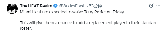 北京时间4月8日,根据The HEAT Realm报道,热火队预计将在本周五裁掉罗齐尔,此举将让他们有机会在正式阵容中补充一名替代球员。