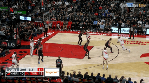次节回来还剩11分45秒时,鲍威尔等人连续冲击篮筐,但双方始终拉不开分差,至还剩9分39秒时,鲍威尔两罚全中,再次将比分追成34:34。还剩9分7秒时阿德巴约两罚命中,热火36:34领先,随即猛龙在7分27秒内打出30:12攻势,从38:45一路涨到47:64,期间还剩5分22秒时英格拉姆转身后仰投篮命中、还剩4分58秒时巴雷特补篮得手,猛龙将优势彻底拉开,半场战罢热火51:64落后。